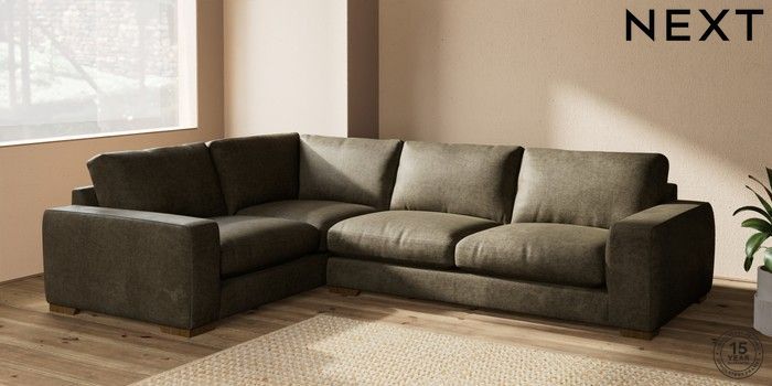 7.2.10 Houghton Deep Relaxed Sit Large Corner Sofa - Left Hand Plush Chenille Moss Green Large Square Angle - Mid | Made Click here to use our website with more accessibility support, for example screen readers