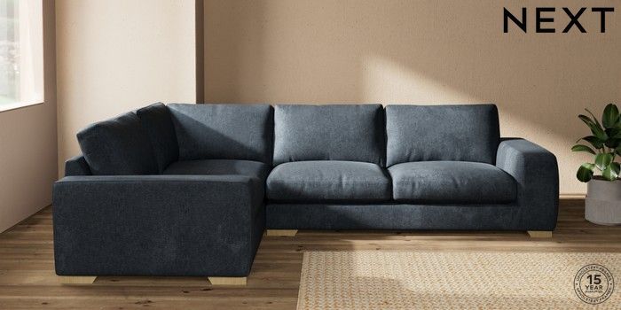7.2.10 Houghton Deep Relaxed Sit Large Corner Sofa - Left Hand Plush Chenille Slate Blue Large Square Angle - Light | Made Click here to use our website with more accessibility support, for example screen readers