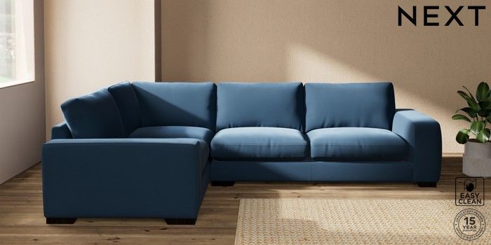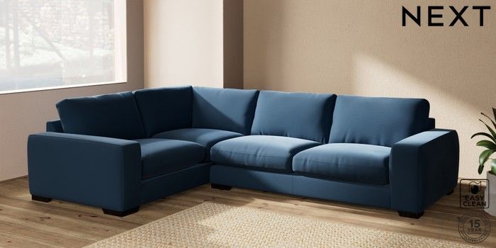 7.2.10 Houghton Deep Relaxed Sit Large Corner Sofa - Left Hand Plush Velvet Easy Clean Airforce Blue Large Square Angle - Dark | Made Click here to use our website with more accessibility support, for example screen readers