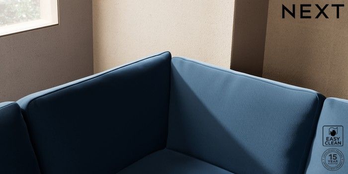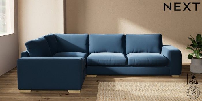 7.2.10 Houghton Deep Relaxed Sit Large Corner Sofa - Left Hand Plush Velvet Easy Clean Airforce Blue Large Square Angle - Light | Made Click here to use our website with more accessibility support, for example screen readers
