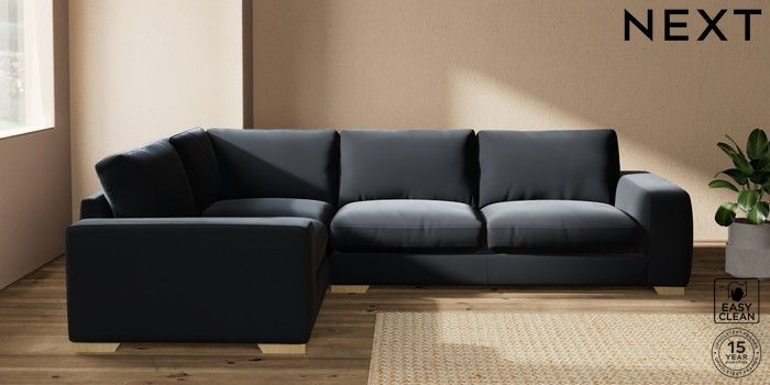 7.2.10 Houghton Deep Relaxed Sit Large Corner Sofa - Left Hand Plush Velvet Easy Clean Charcoal Grey Large Square Angle - Light | Made Click here to use our website with more accessibility support, for example screen readers