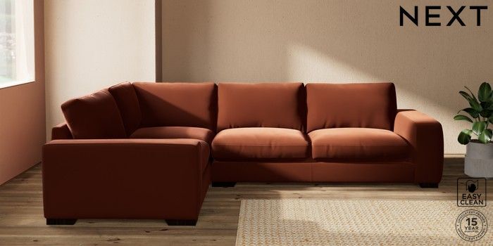 7.2.10 Houghton Deep Relaxed Sit Large Corner Sofa - Left Hand Plush Velvet Easy Clean Ginger Orange Large Square Angle - Dark | Made Click here to use our website with more accessibility support, for example screen readers