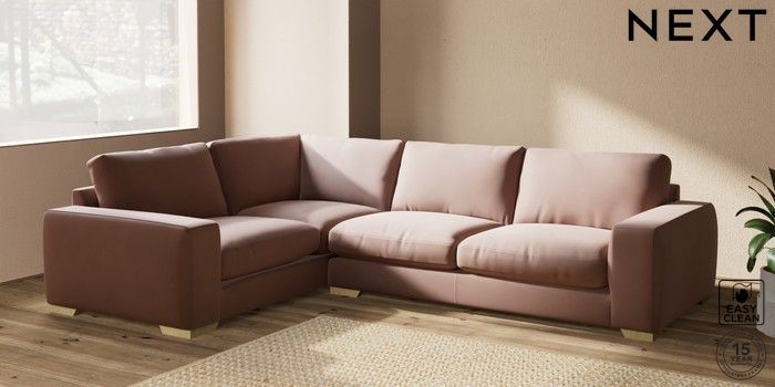 7.2.10 Houghton Deep Relaxed Sit Large Corner Sofa - Left Hand Plush Velvet Easy Clean Mid Natural Large Square Angle - Light | Made Click here to use our website with more accessibility support, for example screen readers