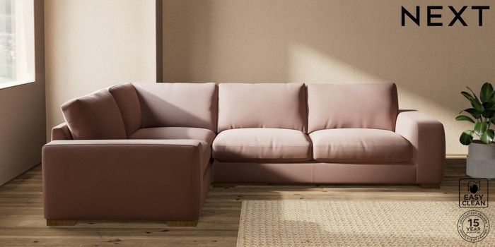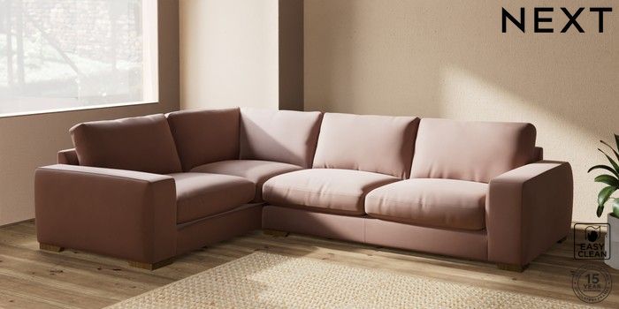 7.2.10 Houghton Deep Relaxed Sit Large Corner Sofa - Left Hand Plush Velvet Easy Clean Mid Natural Large Square Angle - Mid | Made Click here to use our website with more accessibility support, for example screen readers