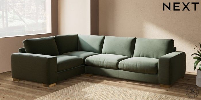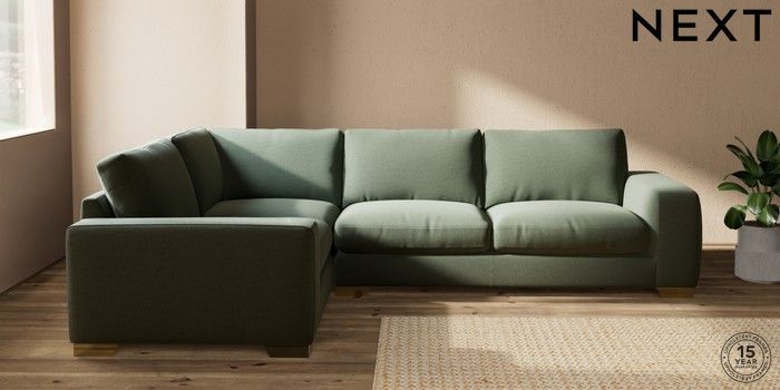 7.2.10 Houghton Deep Relaxed Sit Large Corner Sofa - Left Hand Relaxed Linen Look Dark Green Large Square Angle - Brushed Brass | Made Click here to use our website with more accessibility support, for example screen readers