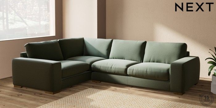 7.2.10 Houghton Deep Relaxed Sit Large Corner Sofa - Left Hand Relaxed Linen Look Dark Green Large Square Angle - Mid | Made Click here to use our website with more accessibility support, for example screen readers