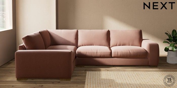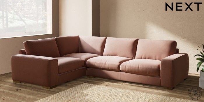 7.2.10 Houghton Deep Relaxed Sit Large Corner Sofa - Left Hand Relaxed Linen Look Light Rust Brown Large Square Angle - Mid | Made Click here to use our website with more accessibility support, for example screen readers
