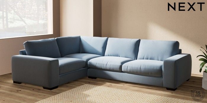 7.2.10 Houghton Deep Relaxed Sit Large Corner Sofa - Left Hand Relaxed Linen Look Mid Blue Large Square Angle - Dark | Made Click here to use our website with more accessibility support, for example screen readers