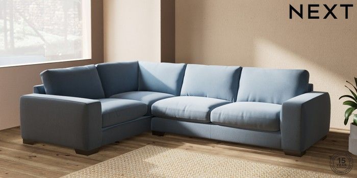 7.2.10 Houghton Deep Relaxed Sit Large Corner Sofa - Left Hand Relaxed Linen Look Mid Blue Large Square Angle - Gunmetal | Made Click here to use our website with more accessibility support, for example screen readers