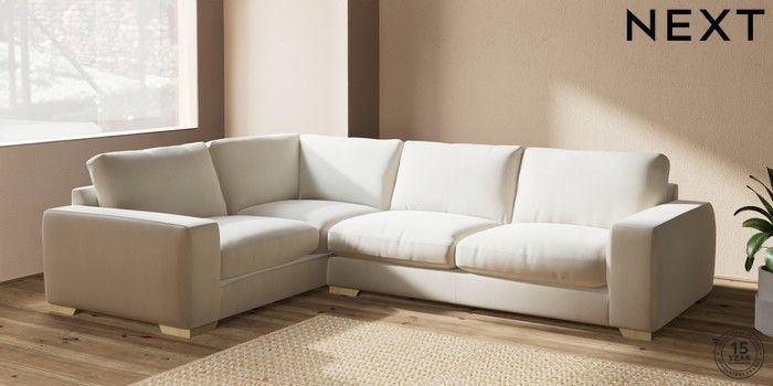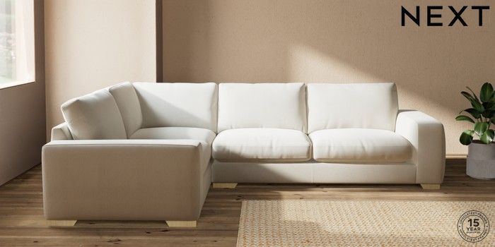 7.2.10 Houghton Deep Relaxed Sit Large Corner Sofa - Left Hand Relaxed Linen Look Oyster Large Square Angle - Light | Made Click here to use our website with more accessibility support, for example screen readers