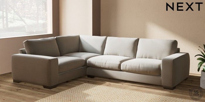 7.2.10 Houghton Deep Relaxed Sit Large Corner Sofa - Left Hand Ripple Chenille Light Natural Large Square Angle - Gunmetal | Made Click here to use our website with more accessibility support, for example screen readers