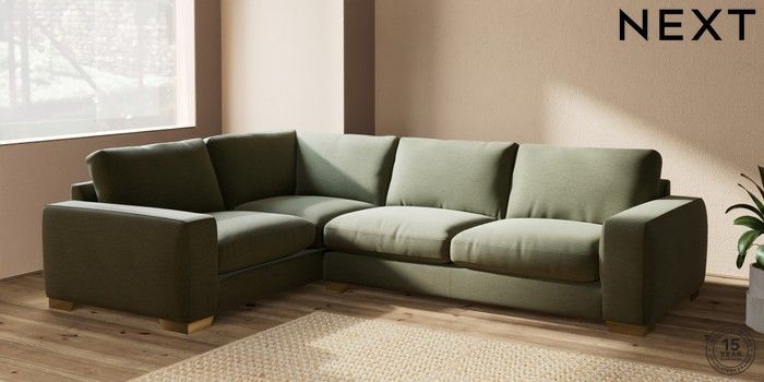 7.2.10 Houghton Deep Relaxed Sit Large Corner Sofa - Left Hand Ripple Chenille Mid Moss Green Large Square Angle - Brushed Brass | Made Click here to use our website with more accessibility support, for example screen readers