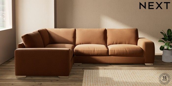 7.2.10 Houghton Deep Relaxed Sit Large Corner Sofa - Left Hand Ripple Chenille Mid Rust Brown Large Square Angle - Chrome Metal | Made Click here to use our website with more accessibility support, for example screen readers