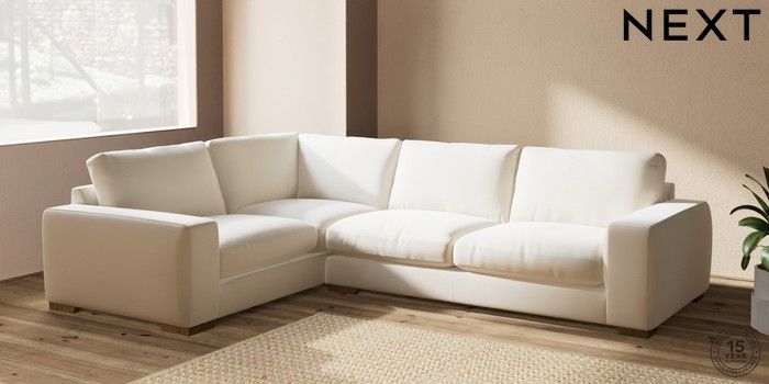 7.2.10 Houghton Deep Relaxed Sit Large Corner Sofa - Left Hand Ripple Chenille Oyster Large Square Angle - Mid | Made Click here to use our website with more accessibility support, for example screen readers