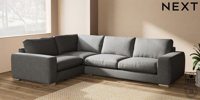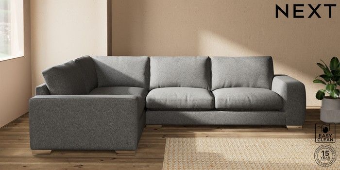 7.2.10 Houghton Deep Relaxed Sit Large Corner Sofa - Left Hand Tweedy Blend Easy Clean Dark Grey Large Square Angle - Chrome Metal | Made Click here to use our website with more accessibility support, for example screen readers
