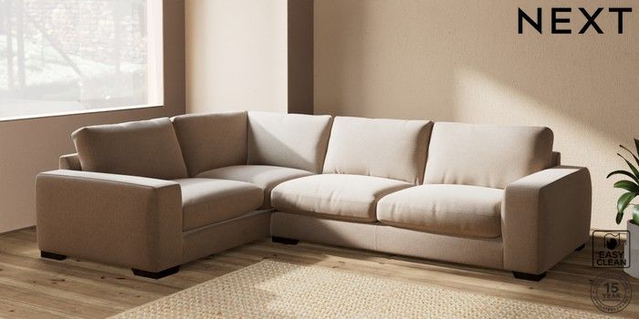7.2.10 Houghton Deep Relaxed Sit Large Corner Sofa - Left Hand Tweedy Blend Easy Clean Light Dove Natural Large Square Angle - Dark | Made Click here to use our website with more accessibility support, for example screen readers