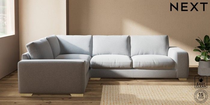 7.2.10 Houghton Deep Relaxed Sit Large Corner Sofa - Left Hand Tweedy Blend Easy Clean Light Silver Grey Large Square Angle - Light | Made Click here to use our website with more accessibility support, for example screen readers