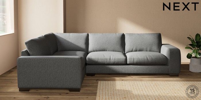 7.2.10 Houghton Deep Relaxed Sit Large Corner Sofa - Left Hand Tweedy Chenille Dark Grey Large Square Angle - Gunmetal | Made Click here to use our website with more accessibility support, for example screen readers