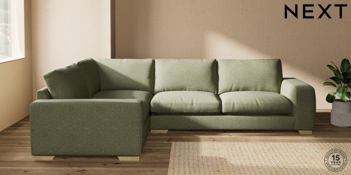 7.2.10 Houghton Deep Relaxed Sit Large Corner Sofa - Left Hand Tweedy Chenille Mid Moss Green Large Square Angle - Light | Made Click here to use our website with more accessibility support, for example screen readers