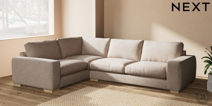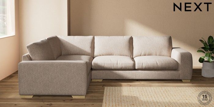7.2.10 Houghton Deep Relaxed Sit Large Corner Sofa - Left Hand Tweedy Chenille Mid Natural Large Square Angle - Light | Made Click here to use our website with more accessibility support, for example screen readers