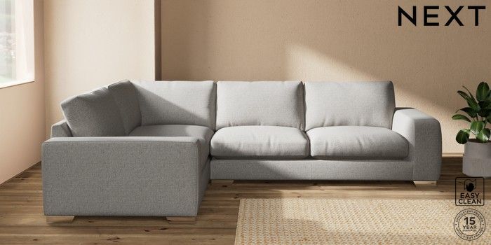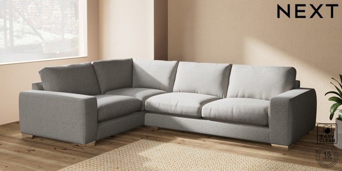7.2.10 Houghton Deep Relaxed Sit Large Corner Sofa - Left Hand Woven Chenille Easy Clean Light Grey Large Square Angle - Chrome Metal | Made Click here to use our website with more accessibility support, for example screen readers