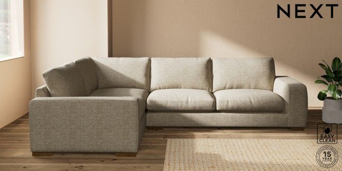 7.2.10 Houghton Deep Relaxed Sit Large Corner Sofa - Left Hand Woven Chenille Easy Clean Mid Natural Large Square Angle - Mid | Made Click here to use our website with more accessibility support, for example screen readers