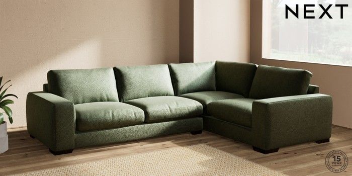 7.2.10 Houghton Deep Relaxed Sit Large Corner Sofa - Right Hand Boucle Chenille Dark Moss Green Large Square Angle - Dark | Made Click here to use our website with more accessibility support, for example screen readers