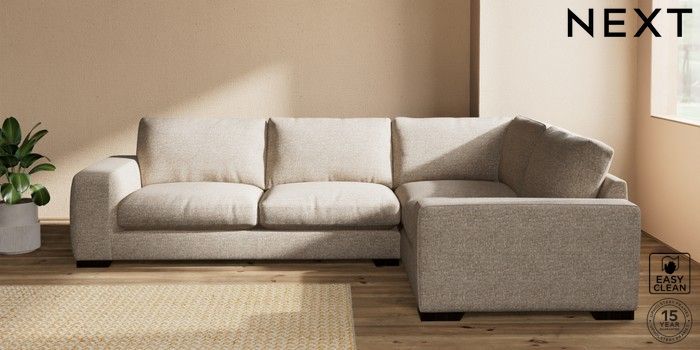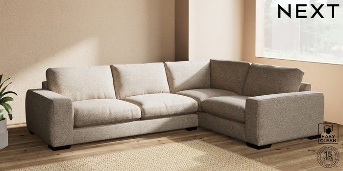 7.2.10 Houghton Deep Relaxed Sit Large Corner Sofa - Right Hand Chunky Boucle Easy Clean Mid Natural Large Square Angle - Dark | Made Click here to use our website with more accessibility support, for example screen readers