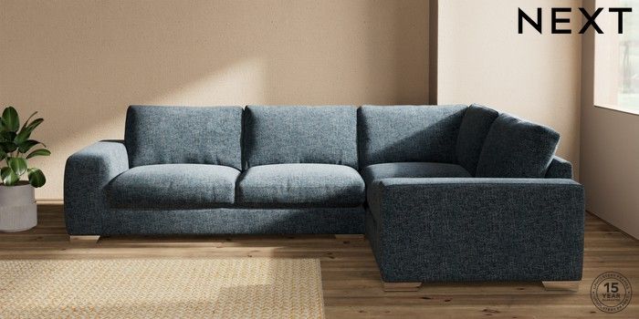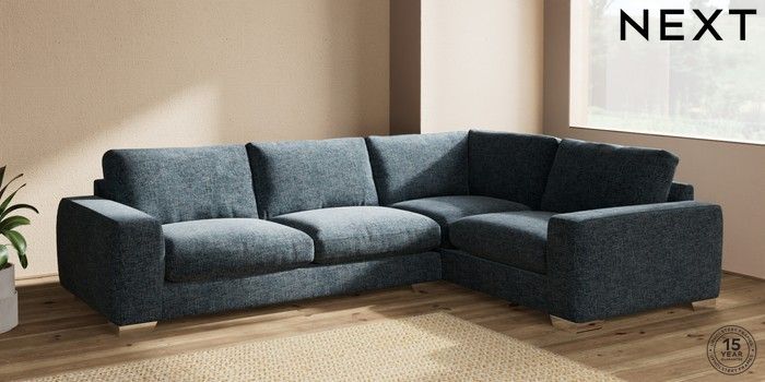 7.2.10 Houghton Deep Relaxed Sit Large Corner Sofa - Right Hand Chunky Chenille Dark Navy Blue Large Square Angle - Chrome Metal | Made Click here to use our website with more accessibility support, for example screen readers