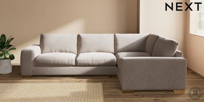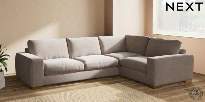 7.2.10 Houghton Deep Relaxed Sit Large Corner Sofa - Right Hand Chunky Chenille Light Dove Large Square Angle - Brushed Brass | Made Click here to use our website with more accessibility support, for example screen readers