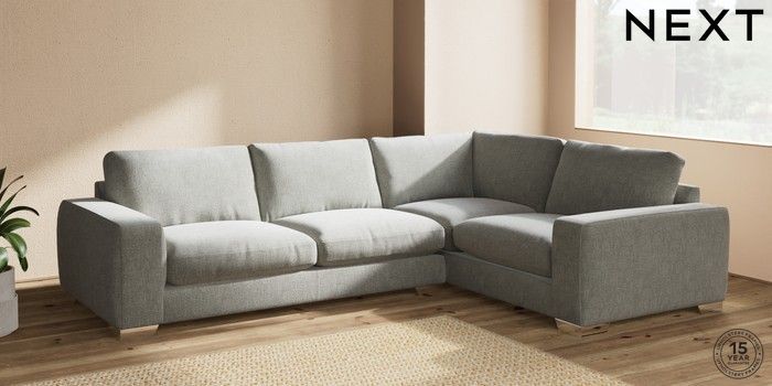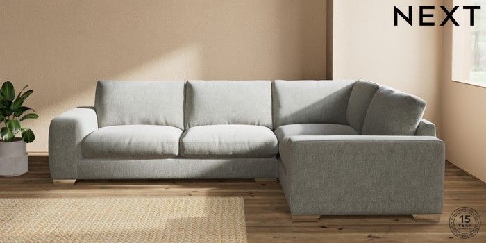7.2.10 Houghton Deep Relaxed Sit Large Corner Sofa - Right Hand Chunky Chenille Light Grey Large Square Angle - Chrome Metal | Made Click here to use our website with more accessibility support, for example screen readers