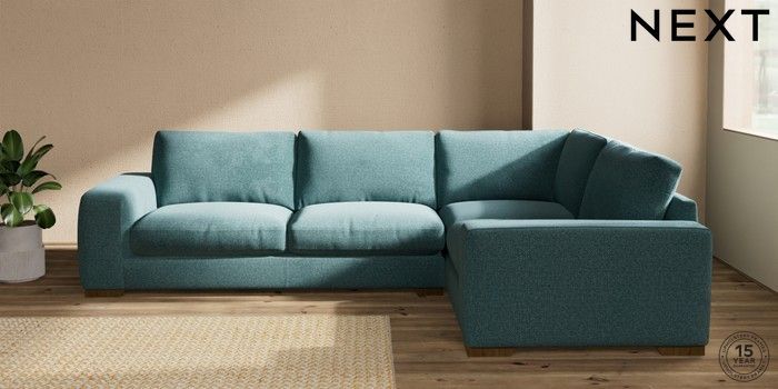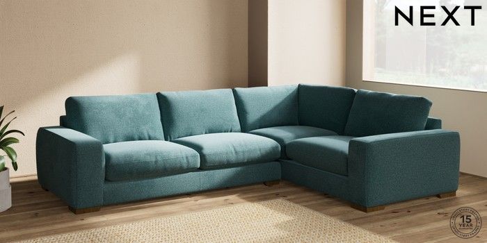 7.2.10 Houghton Deep Relaxed Sit Large Corner Sofa - Right Hand Chunky Chenille Mid Teal Green Large Square Angle - Mid | Made Click here to use our website with more accessibility support, for example screen readers