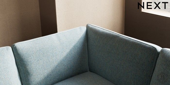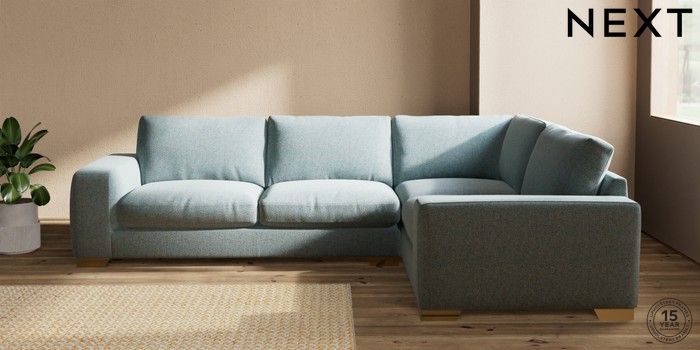 7.2.10 Houghton Deep Relaxed Sit Large Corner Sofa - Right Hand Chunky Marl Mid Blue Large Square Angle - Brushed Brass | Made Click here to use our website with more accessibility support, for example screen readers