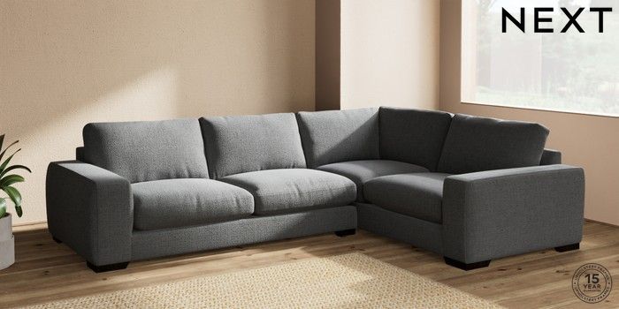 7.2.10 Houghton Deep Relaxed Sit Large Corner Sofa - Right Hand Chunky Texture Dark Grey Large Square Angle - Dark | Made Click here to use our website with more accessibility support, for example screen readers