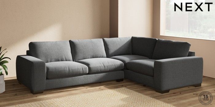 7.2.10 Houghton Deep Relaxed Sit Large Corner Sofa - Right Hand Chunky Texture Dark Grey Large Square Angle - Gunmetal | Made Click here to use our website with more accessibility support, for example screen readers