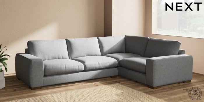 7.2.10 Houghton Deep Relaxed Sit Large Corner Sofa - Right Hand Chunky Weave Mid Grey Large Square Angle - Mid | Made Click here to use our website with more accessibility support, for example screen readers