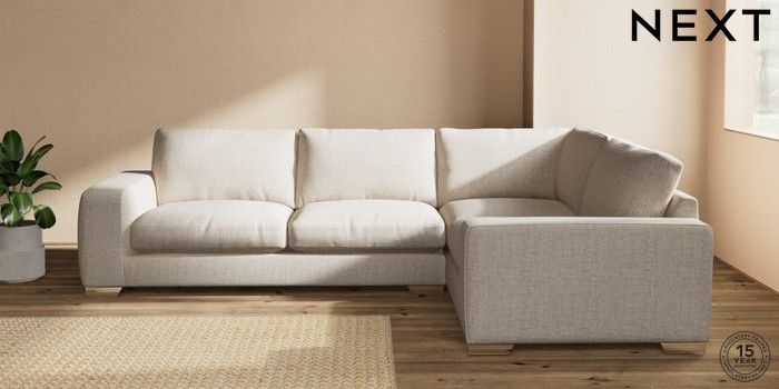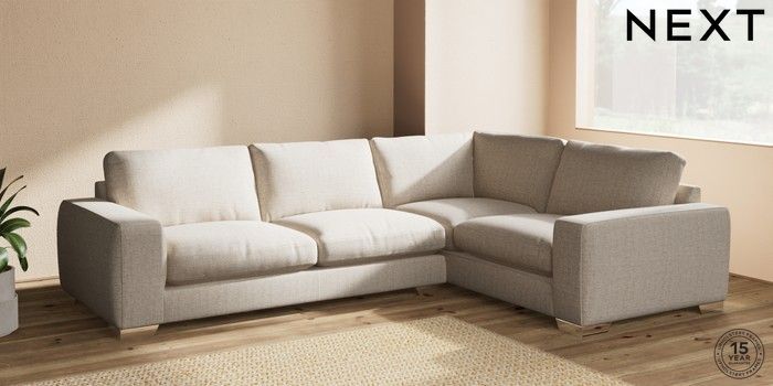 7.2.10 Houghton Deep Relaxed Sit Large Corner Sofa - Right Hand Chunky Weave Mid Natural Large Square Angle - Chrome Metal | Made Click here to use our website with more accessibility support, for example screen readers