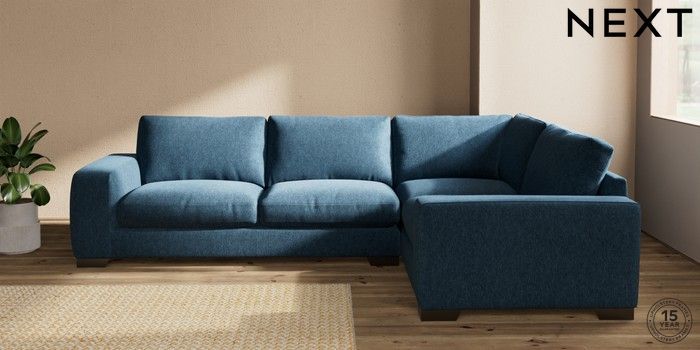 7.2.10 Houghton Deep Relaxed Sit Large Corner Sofa - Right Hand Cotswold Chenille Dark Blue Large Square Angle - Gunmetal | Made Click here to use our website with more accessibility support, for example screen readers