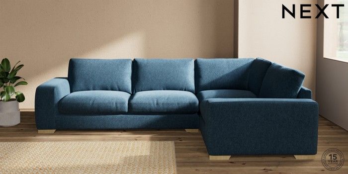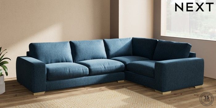 7.2.10 Houghton Deep Relaxed Sit Large Corner Sofa - Right Hand Cotswold Chenille Dark Blue Large Square Angle - Light | Made Click here to use our website with more accessibility support, for example screen readers