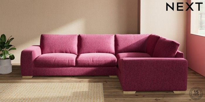 7.2.10 Houghton Deep Relaxed Sit Large Corner Sofa - Right Hand Cotswold Chenille Dark Raspberry Pink Large Square Angle - Light | Made Click here to use our website with more accessibility support, for example screen readers