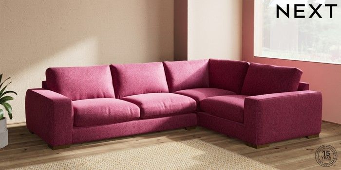 7.2.10 Houghton Deep Relaxed Sit Large Corner Sofa - Right Hand Cotswold Chenille Dark Raspberry Pink Large Square Angle - Mid | Made Click here to use our website with more accessibility support, for example screen readers