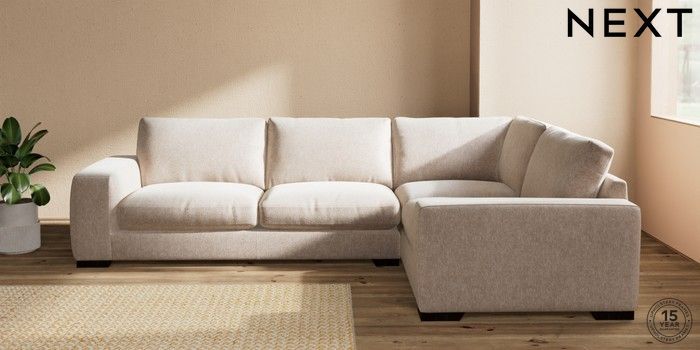 7.2.10 Houghton Deep Relaxed Sit Large Corner Sofa - Right Hand Cotswold Chenille Light Natural Large Square Angle - Dark | Made Click here to use our website with more accessibility support, for example screen readers