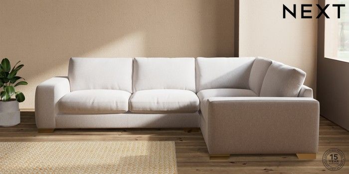 7.2.10 Houghton Deep Relaxed Sit Large Corner Sofa - Right Hand Cotswold Chenille Oyster Large Square Angle - Brushed Brass | Made Click here to use our website with more accessibility support, for example screen readers