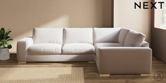 7.2.10 Houghton Deep Relaxed Sit Large Corner Sofa - Right Hand Cotswold Chenille Oyster Large Square Angle - Light | Made Click here to use our website with more accessibility support, for example screen readers