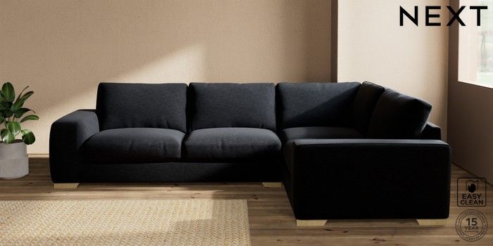 7.2.10 Houghton Deep Relaxed Sit Large Corner Sofa - Right Hand Fine Chenille Easy Clean Black Large Square Angle - Light | Made Click here to use our website with more accessibility support, for example screen readers