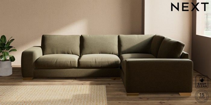 7.2.10 Houghton Deep Relaxed Sit Large Corner Sofa - Right Hand Fine Chenille Easy Clean Dark Moss Green Large Square Angle - Brushed Brass | Made Click here to use our website with more accessibility support, for example screen readers