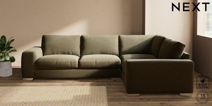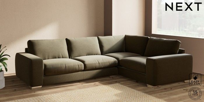 7.2.10 Houghton Deep Relaxed Sit Large Corner Sofa - Right Hand Fine Chenille Easy Clean Dark Moss Green Large Square Angle - Chrome Metal | Made Click here to use our website with more accessibility support, for example screen readers
