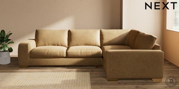 7.2.10 Houghton Deep Relaxed Sit Large Corner Sofa - Right Hand Luxe Chenille Honey Yellow Large Square Angle - Brushed Brass | Made Click here to use our website with more accessibility support, for example screen readers
