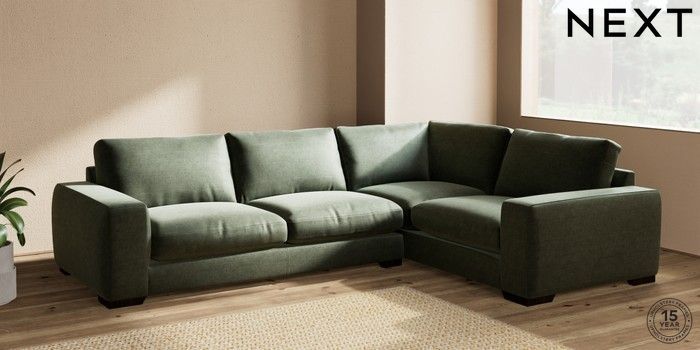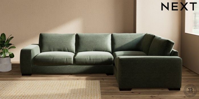 7.2.10 Houghton Deep Relaxed Sit Large Corner Sofa - Right Hand Luxe Chenille Mid Green Large Square Angle - Dark | Made Click here to use our website with more accessibility support, for example screen readers