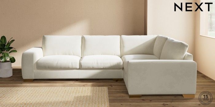 7.2.10 Houghton Deep Relaxed Sit Large Corner Sofa - Right Hand Luxe Chenille Oyster Large Square Angle - Brushed Brass | Made Click here to use our website with more accessibility support, for example screen readers